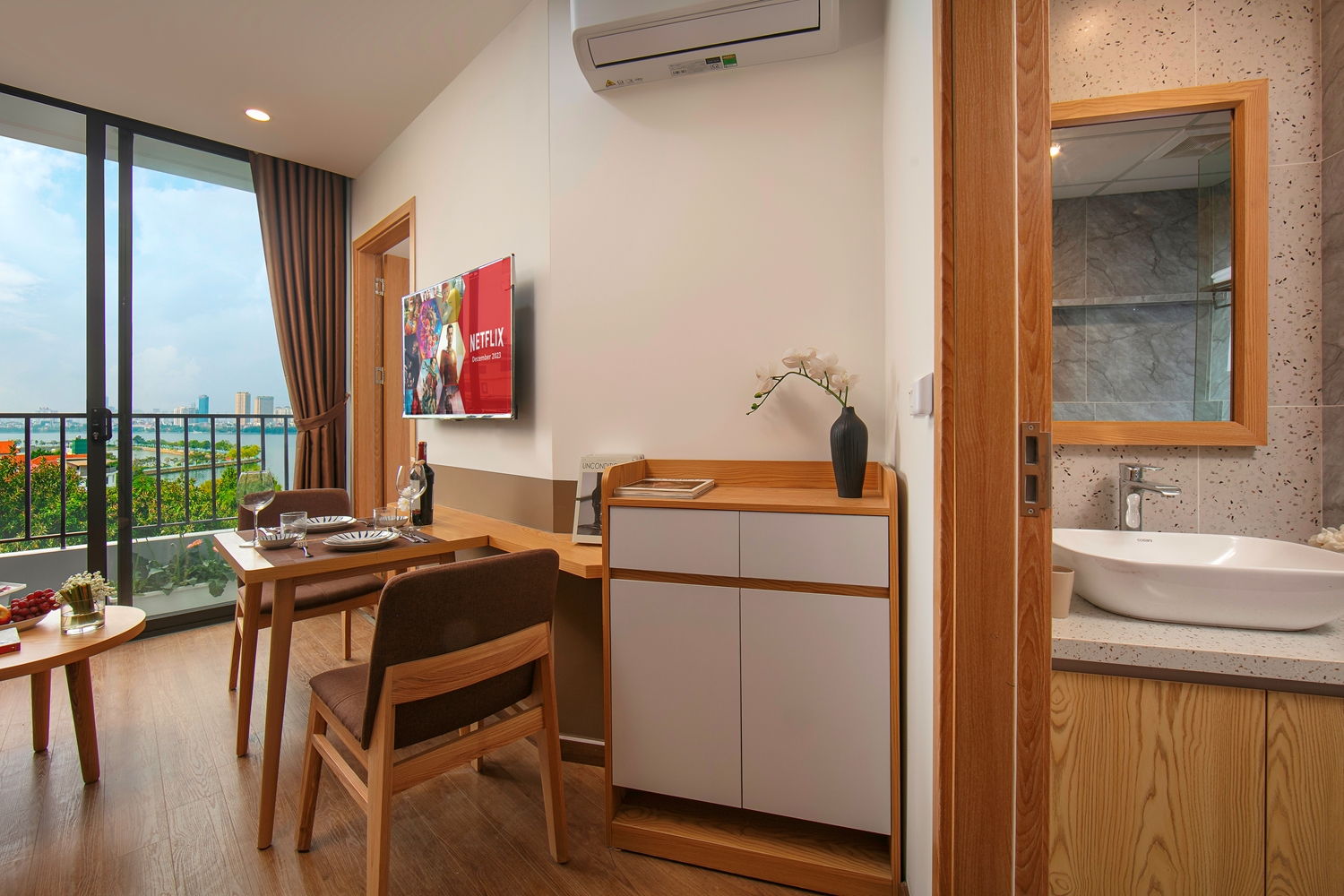 Hãy quên đi những căn hộ bình thường, vượt lên khỏi sự tầm thường. Đây không chỉ là một chốn ẩn náu một phòng ngủ ở Tây Hồ; đây là một bản giao hưởng của sự sang trọng vô song và vẻ đẹp ngoạn mục. Hãy tưởng tượng thức dậy với tiếng sóng vỗ nhẹ của Hồ Tây bên bờ, mặt trời mọc nhuộm nước trong điệu nhảy mê hoặc của vàng và xanh – tất cả đều từ điểm nhìn của khuất giác riêng tư của bạn.